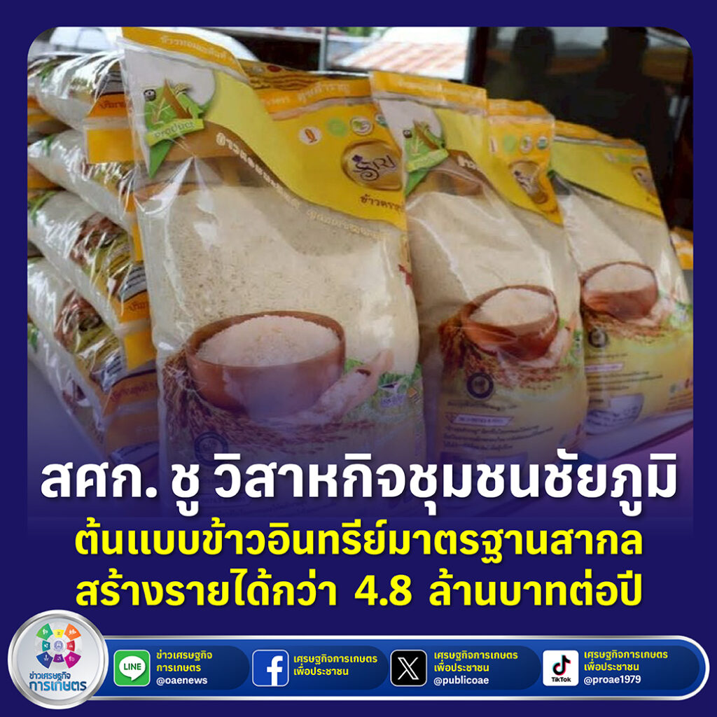 สศก. ชูวิสาหกิจชุมชนชัยภูมิ ต้นแบบข้าวอินทรีย์มาตรฐานสากล สร้างรายได้กว่า 4.8 ล้านบาทต่อปี